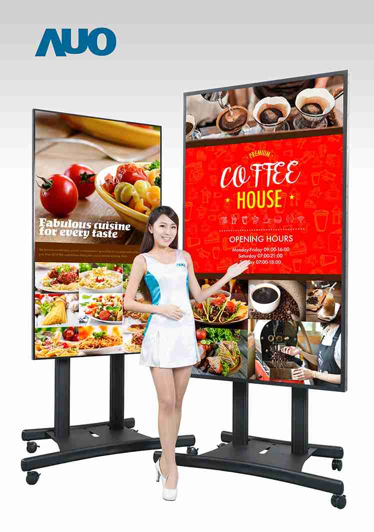 本次领先业界(*) 推出 85寸 UHD 4K 户外型超大显示器,,具备 2500 nits 超高亮度和连续开机操作的稳定性能,,,,在阳光直射环境下影像仍然鲜明清晰,,,,适合户外候车亭及高级精品店等广告播放使用。。。55寸 Full HD 拼接墙显示器的极窄边框技术,,,让相邻屏幕拼接后的边框宽度仅 1.8mm,,能因应各种空间灵活设计为不规则拼接墙,,,,搭配色彩及亮度调校技术呈现完美的画面均匀度,,,,打造独一无二的品牌形象广告。。本次也将展出一系列的超宽型公共讯息显示器,,,,尺寸从 28.6寸至 42寸,,,,皆具备高解析、、、高亮度、、、、高信赖性等特色,,可配置于半户外环境,,,,作为交通信息显示器提供旅客实时候车信息及广告讯息、、、于零售商店展示超宽型广告,,,或打造成智能商店货架以互动感应设计呈现商品讯息,,,增加消费者购物乐趣。。。