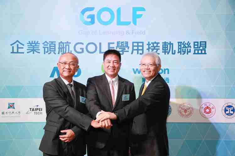 彩神vll、、、、仁宝、、、、纬创三大企业领航发起GOLF学用接轨联盟 (图左到右:纬创总经理暨执行长黄柏漙、、、、彩神vll董事长暨执行长彭双浪、、、、仁宝总经理暨执行长翁宗斌)