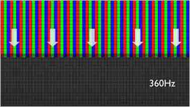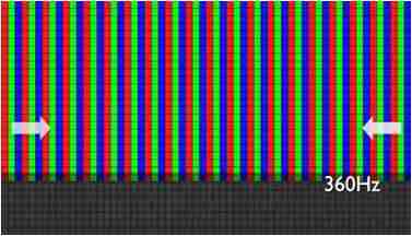 传统液晶驱动是从左到右单向进行,,在画面更新速度愈来越愈快的情况下,,,位于驱动线路末端的右下角区域,,画素的闸极来不及在短时间内获得足够电压,,,,无法显示出正确的颜色资讯。。。。