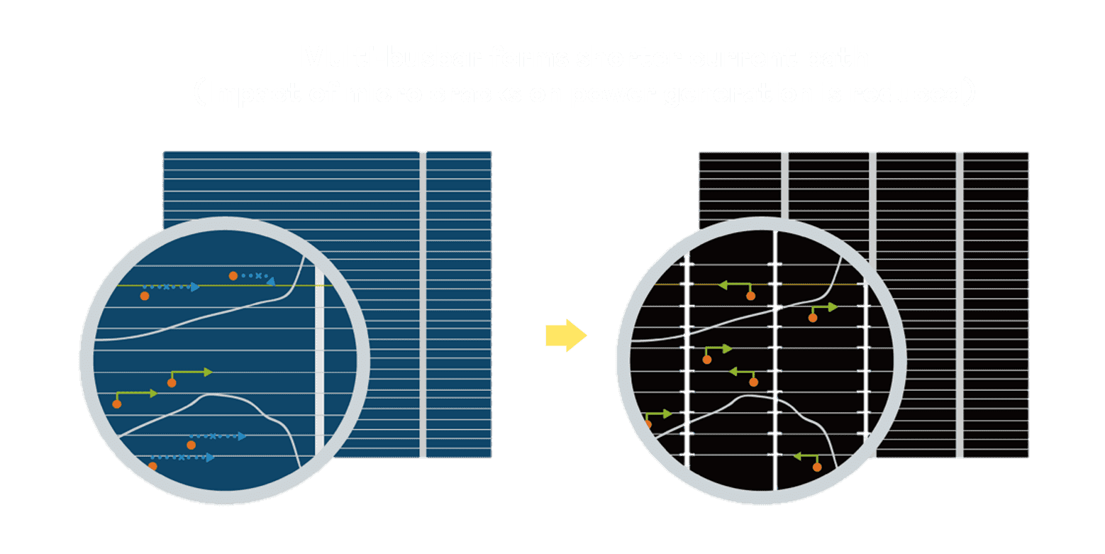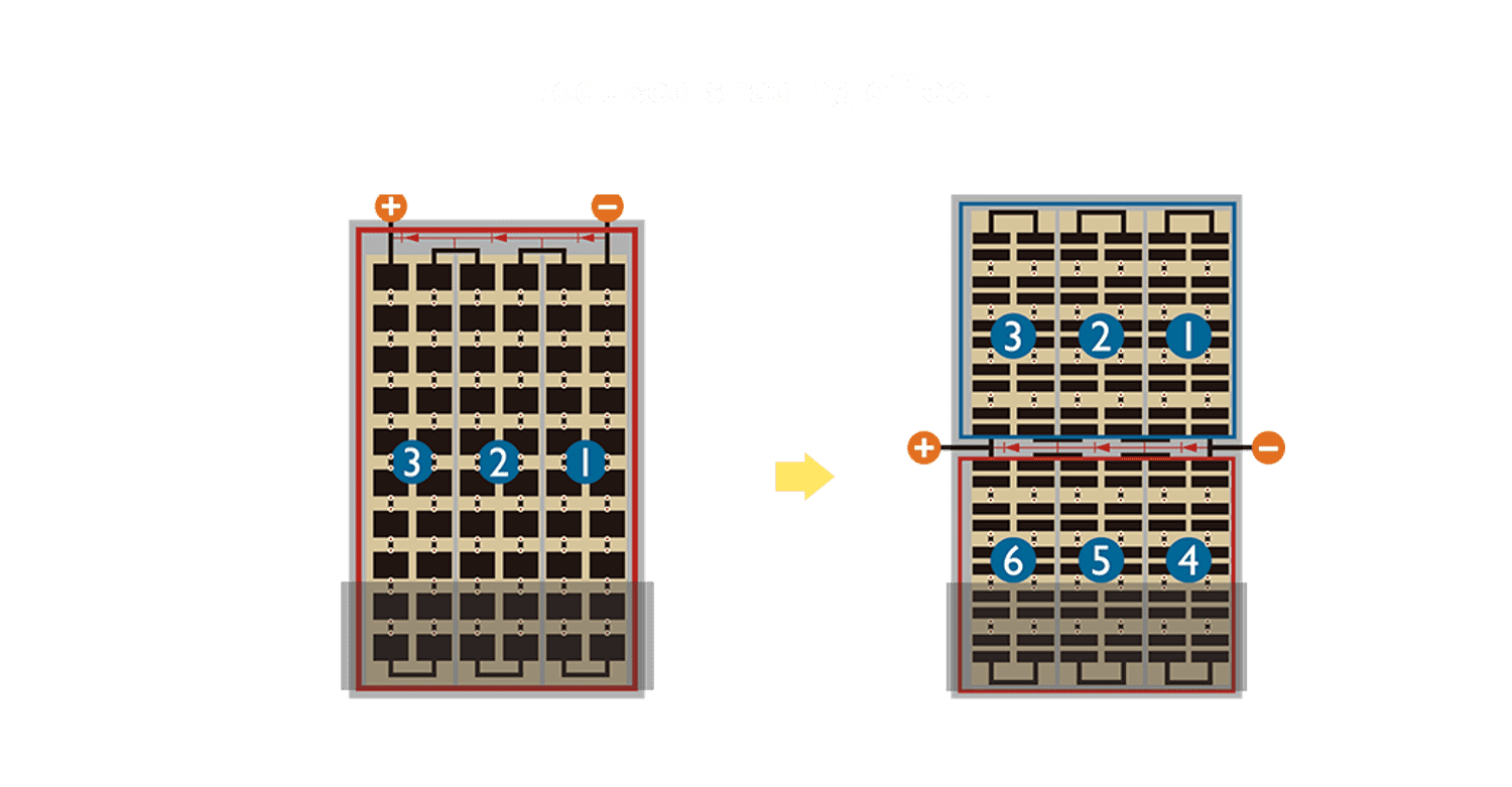 优化的太阳能电池结构设计,,不仅提高电流收集效率,,,,降低电池隐裂,,,,使太阳能模组长期维持稳定的输出效能,,,,提高营运效益。。